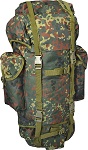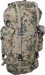 Der Trekkingrucksack liegt eng am Rücken und verfügt über ein Fach für den obligatorischen Schlafsack. Durch die Tarnfarbe fällt dieser Rucksack im Gelände nicht auf. Die Form eines Koppeltragegestells perfektioniert diese Ausführung als Trekkingrucksack und es kann mehr Gewicht transportiert werden.